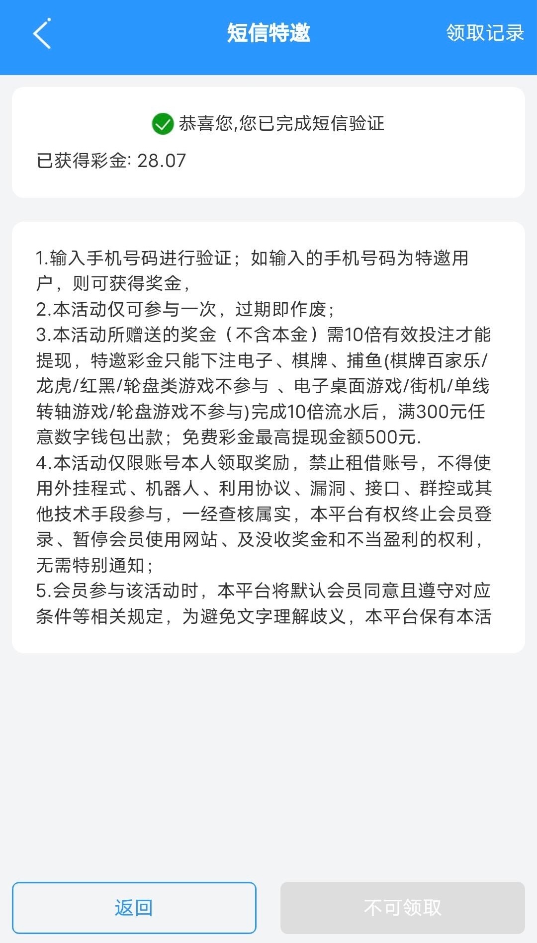 两个月前发过当时不是特邀的兄弟可以去看看自己是不是特邀,10倍流水,仅限电子棋牌捕鱼,满300提现最高提500