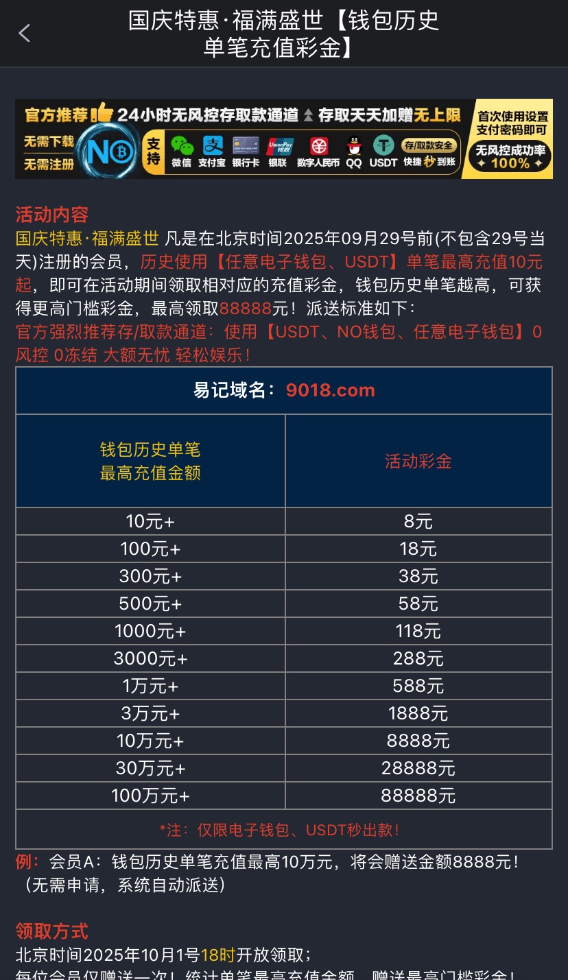 钱包单笔存款回馈1倍流水提款